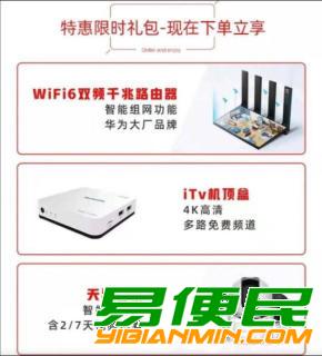 【推荐】套餐三 300M 版: 每月169元(全国流量60G):送300M宽带+ 1主2副手机卡 全国流量60G+1000分钟通话+光猫免费+4K高清机顶盒免费+免费上门+免费安装